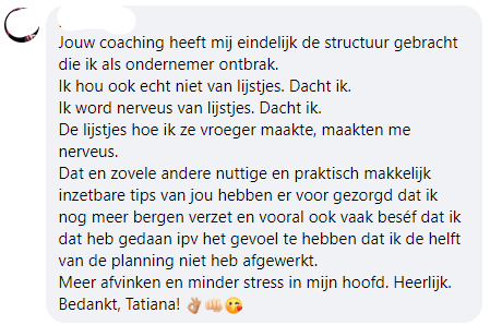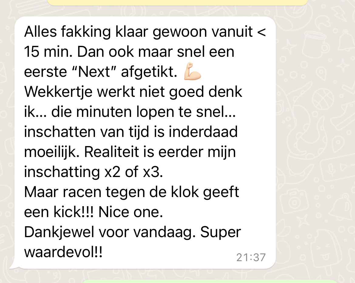 Met als resultaat dat je niet alles tegelijk moet oplossen, recht trekken en brandjes blussen.